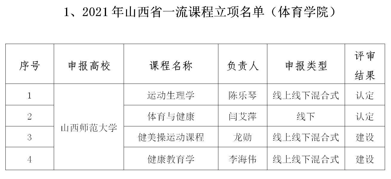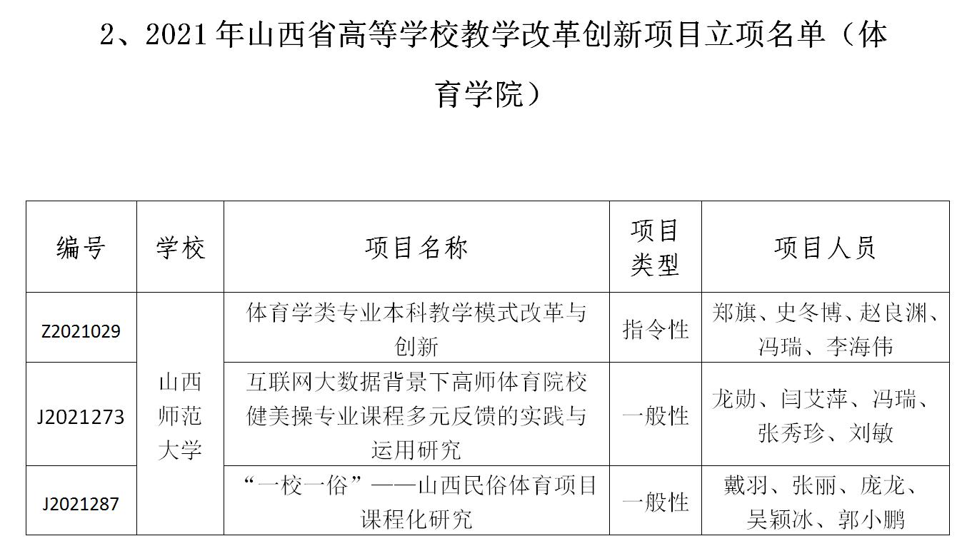 近日,省教育厅分别公示了2021年山西省一流课程和高等学校教学改革创新项目拟立项结果。德赢共有4门课程获得全省一流课程立项,其中包括认定课程和建设课程各2门;有3个课题获得全省高等学校教学改革创新项目立项,其中指令性项目1项,一般性项目2项。