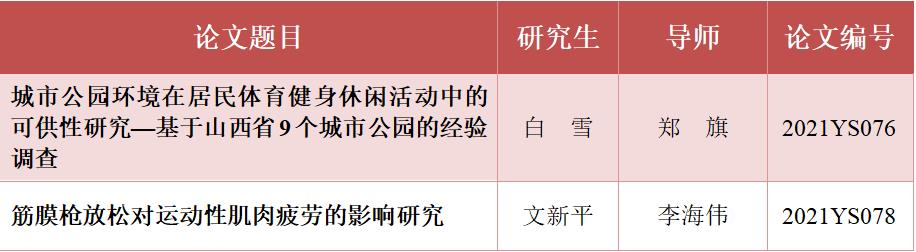 近日山西省人民政府学位委员会公布了山西省2021年优秀博士、硕士学位论文的评选结果,德赢体育学研究生白雪和体育硕士研究生文新平二人的学位论文入选。