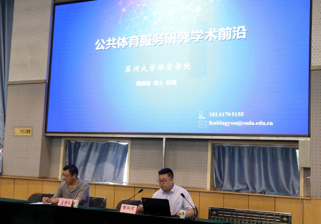 报告会上,樊炳有教授结合自身研究领域,从“体育公共服务”与“公共体育服务”概念的认识和理解切入,围绕新时代、新标志的历史方位下,公共体育的发展背景主要体现在供给侧结构性改革、公共体育服务新阶段、新时代公共体育服务发展的理念三大领域,阐释了公共体育服务发展的前沿,并结合案例分析沿海发达地区和内陆在公共体育服务领域存在的差异,对我国未来公共体育服务的发展进行了深度的思考。