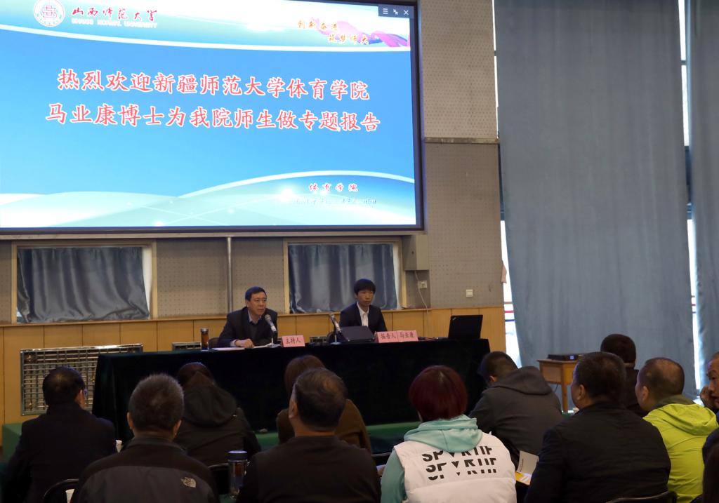 3月26日上午8:00-10:00,新疆师范大学马业康博士、副教授,应邀在德赢vwin体育官网综合馆一层进行学术报告。报告由院长郑旗教授主持。德赢vwin体育官网部分师生、临汾市体育运动学校教师聆听了此次报告。