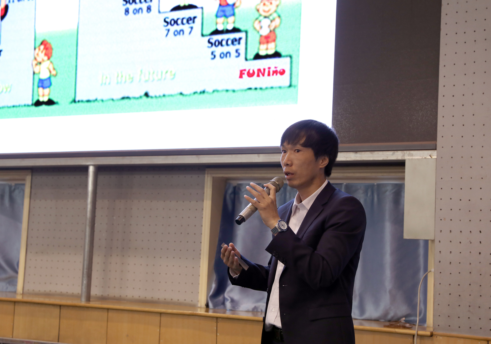 马业康博士围绕《青少年足球教学训练概念——基于开放式运动技能学习理论》这一主题,从足球运动训练的构成阶段、动作技能的控制理论,足球比赛的基本内容等多个方面指出足球等开放式运动项目在训练和教学中应注重运动员神经控制系统方面的训练,以应对球场上瞬息万变的情况。马业康博士还提供了多种练习方法,希望教师和学生在平时的教学和训练中能够多加入一些非线性和内隐性学习,以适应真正比赛的需要。报告结束后,马业康博士与在场师生进行了交流互动。