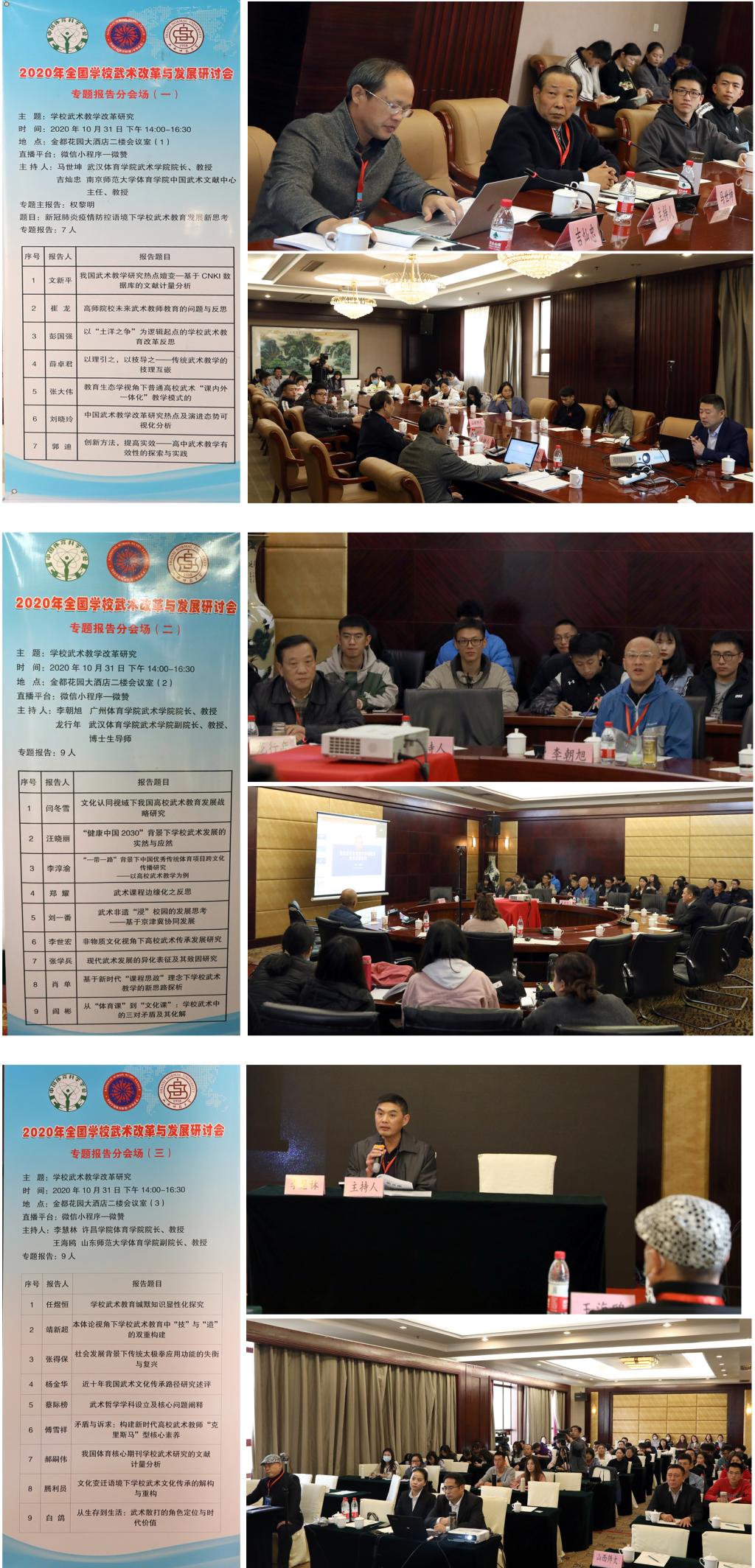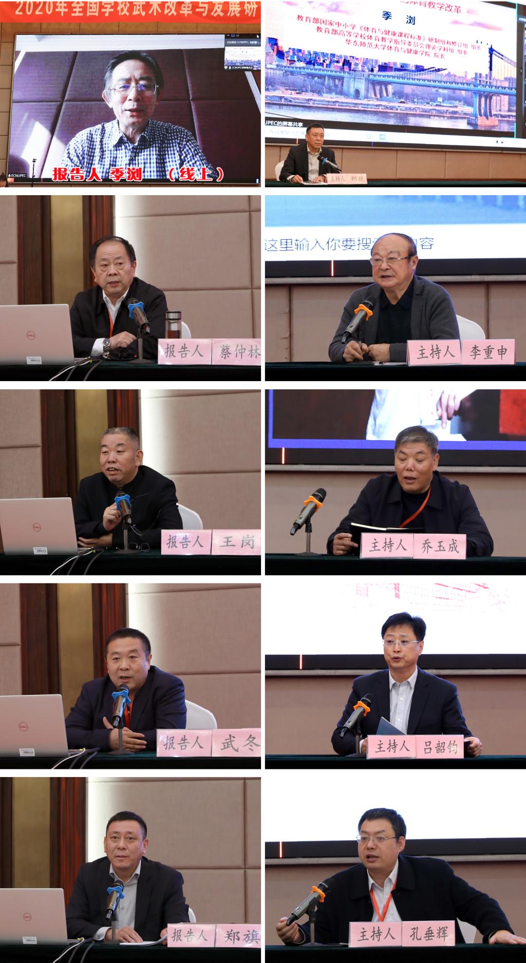 专题报告环节采用“线上报告+现场点评”的方式进行,德赢vwin体育官网权黎明副教授在现场做了题为《新冠肺炎疫情防控语境下学校武术教育发展新思考》的报告,其余25位论文作者围绕“学校武术教学改革研究”、“学校武术发展研究”、“学校武术文化传承研究”等主题做了专题交流。武汉德赢vwin体育官网马世坤教授、南京师范大学吉灿忠教授、广州德赢vwin体育官网李朝旭教授、武汉德赢vwin体育官网龙行年教授、许昌学院李慧林教授、山东师范大学王海鸥教授在会议现场对报告做了精彩点评。