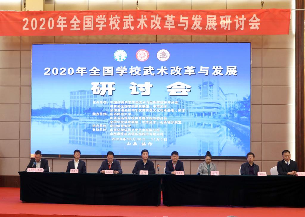 10月31日,“2020年全国学校武术改革与发展研讨会”在德赢vwin体育官网召开。 研讨会由中国体育科学学会武术与民族传统体育分会、教育部全国学校体育联盟(中华武术)、全国普通高校中华优秀传统文化传承基地(武术)联合主办,德赢vwin体育官网、山西省高等学校体育教学指导委员会、全国学校体育联盟(中华武术)山西省分联盟承办,临汾体育智库协办, 来自上海德赢vwin体育官网、华东师范大学、北京体育大学、北京师范大学、南京师范大学、山东师范大学、湖北大学、武汉德赢vwin体育官网、广州德赢vwin体育官网、兰州理工大学、许昌学院等全国30多所高校和单位的150余位专家学者以线上线下相结合的方式参会。