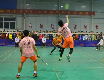 本次羽毛球联赛响应了我校阳光体育的号召,本着“热爱运动,享受健康,走出教室,拥抱阳光”的理念开展,为全校师生提供了一个增强体能,提高技艺的广阔平台。11月2日——11月27日,由校团委、校学生会主办,经管学院团委承办,德赢vwin体育官网公共体育部协办的德赢vwin体育官网2015年师生羽毛球联赛在学生活动中心如期举行。共有18个学院、264名师生参赛。本次比赛分团体赛和个人赛两种形式,本科生学院以团体赛的方式组队参赛,研究生学院采用个人赛的形式自主报名。个人赛历时10天进行76场比赛,决赛于11月11日晚结束;团体赛共计180场,经过初赛精彩比拼,经管学院、物信学院、生命学院、文学院、传媒学院、地科学院、数计学院、教育学院成功晋级八强。决赛阶段,选手们更是努力拼搏,场地上掌声呐喊声不断。最终,经过两个小时四十分钟激烈比赛,生命学院夺得本次联赛团体冠军。至此,德赢vwin体育官网2015年师生羽毛球联赛圆满落幕。