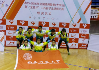 2016年4月9日-4月11日,由山西大学承办的2015——2016年全国跳绳联赛(太原站)暨 “龙花杯”山西省学生跳绳比赛在山西大学文体馆拉开了帷幕。我校代表队由8名学生组成,在德赢vwin体育官网副院长、领队杨永茂和教练闫艾萍、马彩珍两位老师的带领下,大家奋力争先,比实力,拼耐力,赛体力,经过两天的紧张比赛,取得了骄人佳绩(附比各项目赛名次),为我校赢得了荣誉。(德赢vwin体育官网公体部 供稿)