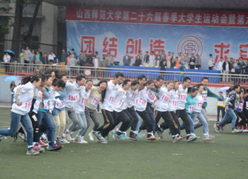 5月9日至10日,我校第二十六届春季大学生运动会暨第六届教职工运动会在一校区田径场隆重举行。本次运动会共有来自27个基层工会的1169名教职工,20学院的1192名学生以及来自17个学院的5000余名团体操队员参加。校领导武海顺、王心平、李德龙、卫建国、原战勇、闫桂琴、郝勇东,校长助理车文明、 张献明,校体委副主任薛珠峰、李春仁、范哲锋及我校体育运动委员会委员、各学院、各独立研究所、机关各部门和各教学辅助单位的负责人出席本次开幕式。