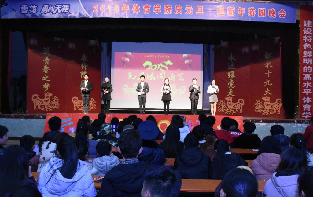 12月31日20:30,由德赢vwin体育官网团委、学生会主办,学生社团联合会承办的“青春献礼十九大,同心共筑体院梦”游园晚会在大礼堂举行,全院400余名师生参与了游园。游园晚会包括节目表演和互动游戏两部分,历时三个半小时。