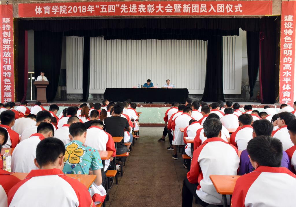 表彰大会在雄浑的国歌声中拉开序幕。首先,院团委副书记程祖浩作了以“不忘初心跟党走,努力奋斗新时代,为实现‘体院梦’而贡献青春力量”为主题的德赢vwin体育官网2017—2018学年共青团工作报告。