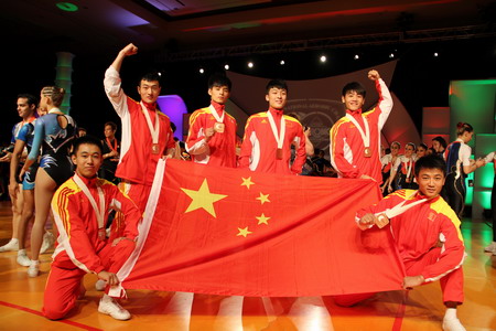 2012年世界健美操冠军赛运动员和国旗合影