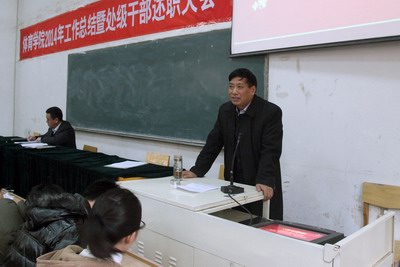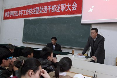 会上,校考核小组孙兆奇同志介绍了述职测评工作的有关要求。院党委书记李学刚以《身子沉下去,责任担起来》为主题进行了述职。从抓好理论学习,提高党员干部的政治理论素养、夯实基层组织,打造特色党建活动品牌、深入基层,倾听师生心声、围绕中心,服务教学、存在的问题和不足等五个方面进行了汇报。院长郑旗就2014年德赢vwin体育官网行政工作进行述职,并部署2015年学院主要工作。他回顾了2014年重点工作完成情况,就学院顶层设计、教学改革、学科建设、运动训练、公共体育教学改革、创新实验区建设、学生管理与学风建设等几个方面进行了总结。并要求全体教职工,进一步强化进取意识、机遇意识、责任意识,脚踏实地,同心同德,攻坚克难,为实现德赢vwin体育官网的梦想做出自己的贡献。