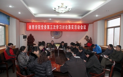 李学刚书记带领大家首先学习了习近平总书记在中纪委十八届二次大会上关于《严明政治纪律、自觉维护党团结统一》的讲话,强调党员干部要讲党性、讲规则、讲约束,没有严格的政治纪律,党组织就失去战斗力,就会一盘散沙,要求大家从自身做起,在师生中树好党员干部形象。接着就体院班子学习讨论落实剖析报告进行解读,大家进行了热烈讨论,指出其中不足。最后,郑旗院长强调:发现问题就要及时改正,要体现在行动上,落实到工作中。通过学习讨论,统一了思想,提高了认识,凝聚了大家共识。