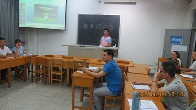 2015年6月9日,德赢vwin体育官网2014级学术型研究生“读书报告会”系列活动之三,在田家炳教学楼07421教室举行。本次读书报告会以“中国足球改革---大家谈”为主题展开,辅导员苏健蛟老师及全体2014级学术型研究生参加了本次活动。