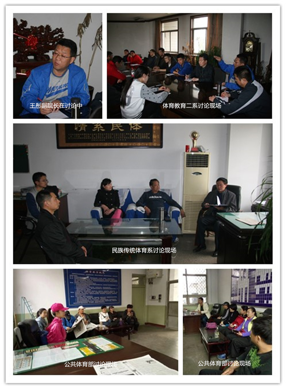 4月8日下午教研活动时间,德赢vwin体育官网体育教育系、体育教育二系、社会体育系、运动训练系、民族传统体育系、公共体育部全体教师分别召开“改造我们的课堂”主题讨论会议,学院领导郑旗、王彤、卢向阳、冯晓丽分别在所联系单位参加了讨论。