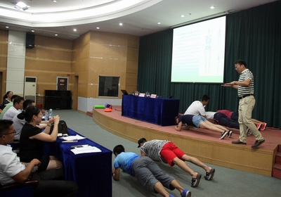 袁守龙博士从体能不足是竞技体育面临的挑战作为切入点,主要围绕身体运动功能训练的发展历程、国际身体运动功能训练发展现状、国际身体运动功能训练新理念新方法、身体运动功能训练中国化趋势与不足、中国身体运动功能训练应对措施等方面全方位阐述和分析了身体运动功能训练的创新与发展。期间,袁守龙博士就身体运动功能训练常用方法进行了动作技能讲解与示范、并与现场师生就动作注意事项、体能测定等问题进行互动交流。报告结束之际,袁守龙博士提出“运动大不同—有氧是主线,力量是关键,拉伸是恢复,平衡协调抗衰老”,提倡每个人都能拥有健康、阳光、有品质的生活,并对大家所提出的问题一一耐心解答,还为学院师生提供了相关资源共享。