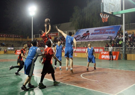 首场比赛由吴合斌老师带领的教职工联队对阵大一大二联队,院党委副书记段东升为比赛开球,此后,比赛正式开始。参赛队员迅速投入到比赛状态,个个雄姿英发,场上团结拼搏,共同合作,一次次地抢球与投篮无不展现出了一个体育生应有的风貌。上半场结束后,大一大二联队暂时领先。中场穿插的炫美舞蹈与劲爆的歌曲,将整场的气氛推向高潮。下半场比赛开始后,教职工联队发起反攻,虽说老师们年龄较大,但在场上的进攻依然是有条不紊,新上场的大一,大二学生同样不甘示弱,双方比赛异常激烈,你争我夺,比分交替领先。最终教职工联队以109比73的比分赢得了此次比赛的胜利。