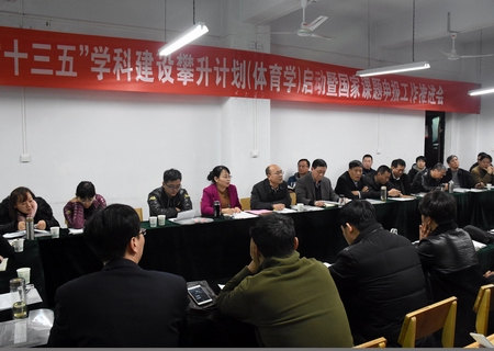 2016年12月2日下午,“十三五”学科建设攀升计划(体育学)启动暨国家课题申报工作推进会在德赢vwin体育官网6教室举行。校科技副处长王亲虎、项目管理科科长董斌、全体院领导、系部与职能科室负责人、硕士生导师以及45岁以下中青年教师参加了本次会议,会议由副院长冯晓丽主持。