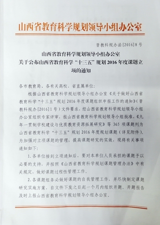近日,经山西省教育科学规划领导小组办公室组织专家评审,德赢青年教师何涛主持申报的《“阳光体育运动”背景下山西省高校体育弱势学生参与体育锻炼的现状调查与对策研究》(课题编号GH-16032)、马彩珍主持申报的《法治视域下中国学校体育政策的权利与救济》(课题编号GH-16033)、赵海涛主持申报的《“建构主义理论”视角下中小学武术教学改革研究》(课题编号GH-16034)、高贯发主持申报的《临汾市中小学推广洪洞通背缠拳方略研究》(课题编号GH-16037)获批山西省教育科学“十三五”规划2016年度课题,课题的获得,进一步激发德赢青年教师的科研积极性,利于提高青年教师的科研能力,也反映出青年教师的学术水平。