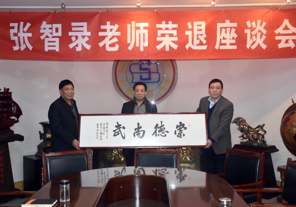 1月15日下午,德赢vwin体育官网退休教师座谈会在东会议室召开。院领导、教师代表及退休教师张智录参加座谈会。座谈会由院党委书记李学刚主持。与会院领导赞扬了张智录老师“学高为师,身正为范”的为师之道,并充分肯定了他对德赢vwin体育官网发展所做出的贡献。希望张老师享受退休生活,继续关心和支持学院发展。接着,张老师回顾了在德赢vwin体育官网的执教经历,讲述了自己从教的心得,并感谢学院给予的关怀。最后,学院领导为张老师赠送牌匾,并合影留念。(院办公室/文 邓碾管/摄)