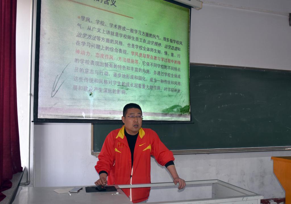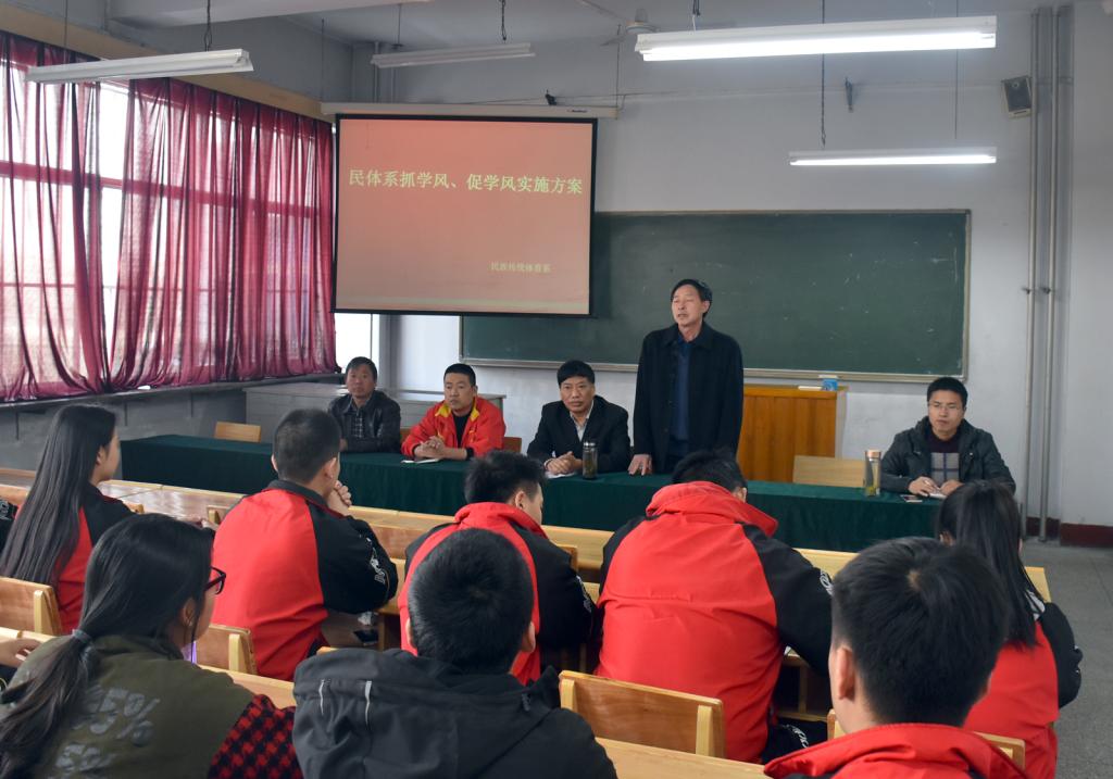 院党委书记李学刚肯定了我系推进学风建设的做法,同时强调了学风班风建设的重要性,依据民体系学生特点,引用大量的鲜活事例,积极引导学生学习的自觉性与自信心,充分发挥辅导员、班团干部的引领作用,营造良好的学习风气,进一步推进学风建设。(高贯发/文 邓碾管/摄)