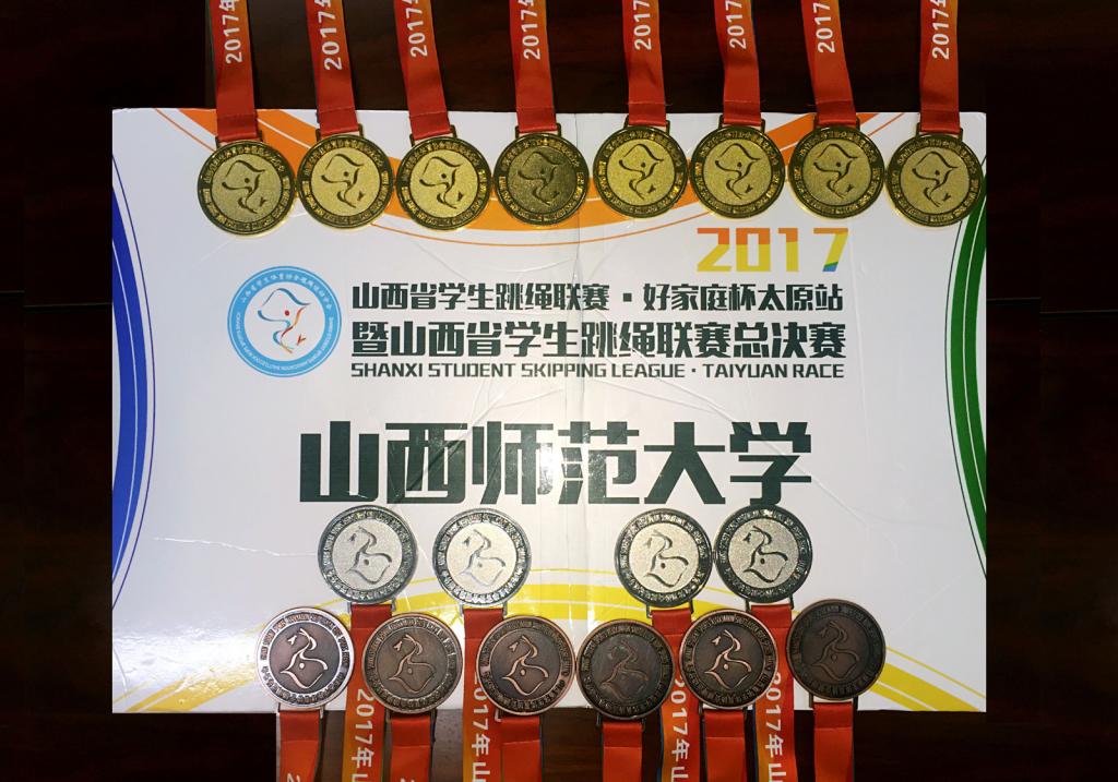 5月26日至29日,由山西省教育厅主办、山西省学生体育协会承办的“2017年山西省学生跳绳联赛”(太原站暨总决赛)在山西体育职业学院举行。参赛的学校有来自山西大学、山西财经大学、太原师范学院、山西旅游职业学院等全省共计37支队伍,近500名选手参赛。