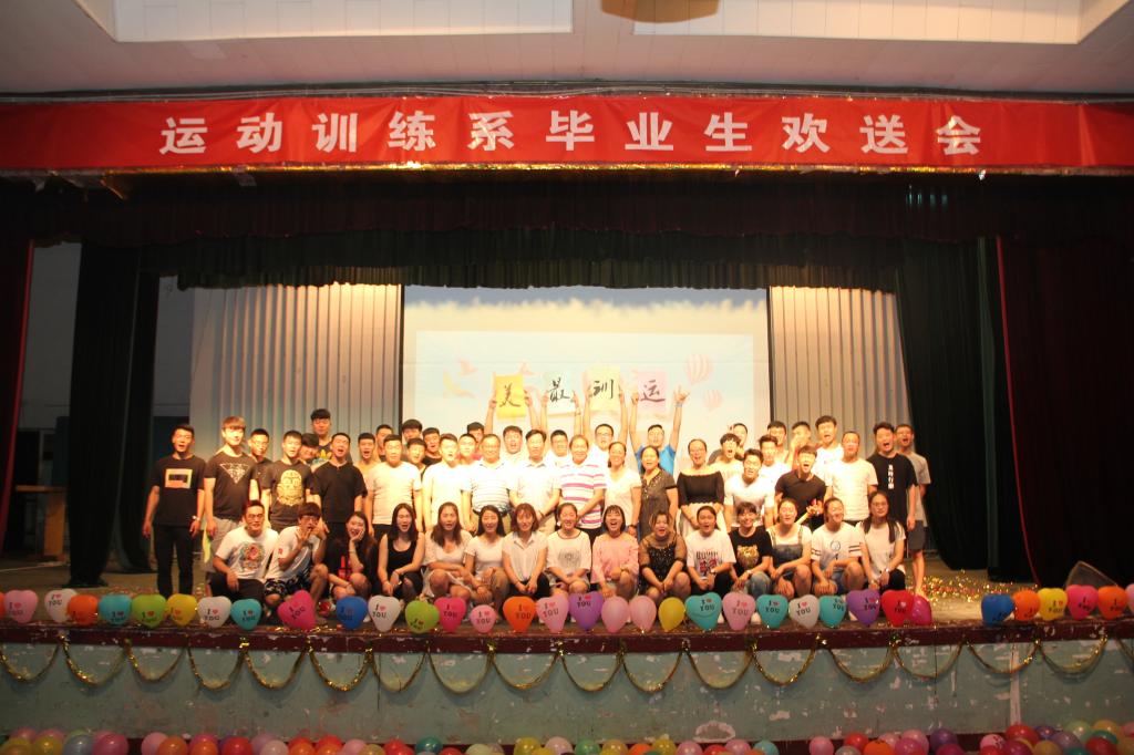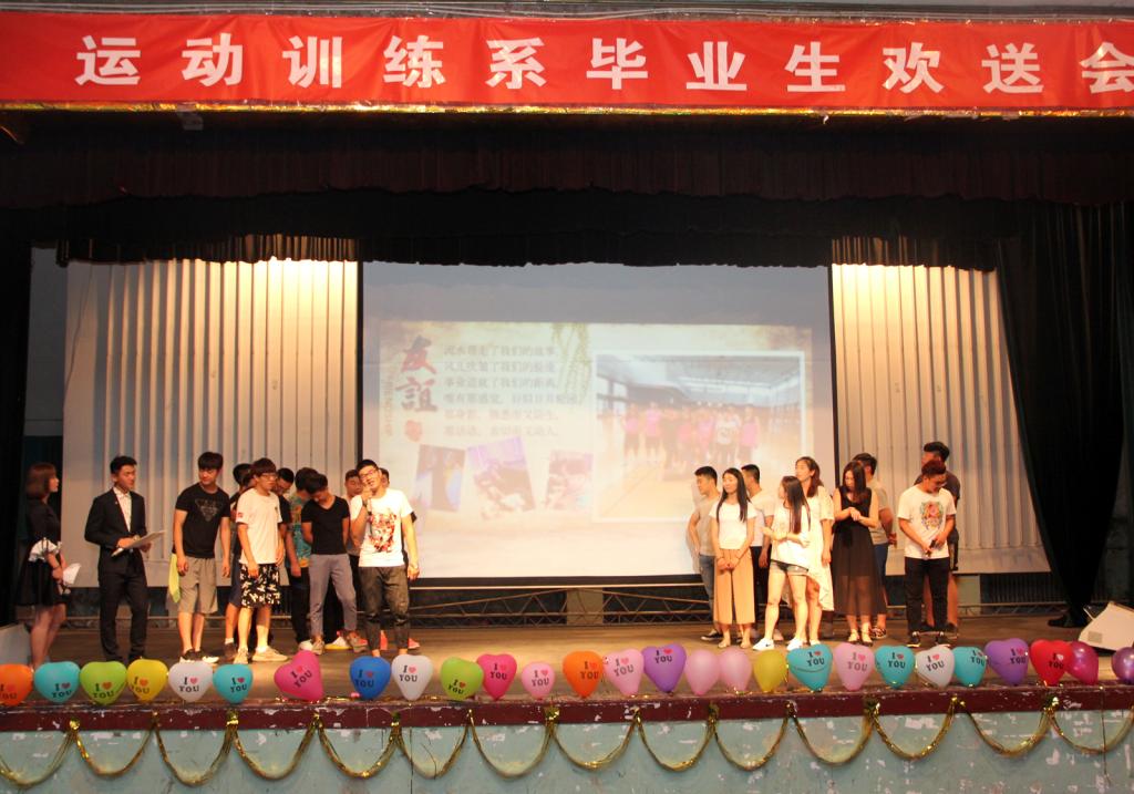 6月14日晚七点三十分,德赢vwin体育官网运动训练系在大礼堂隆重的举办了欢送2017届毕业生文艺晚会。运动训练系主任张伟老师、副主任郭丽娟老师、以及各班辅导员与运训学子在此欢聚一堂。