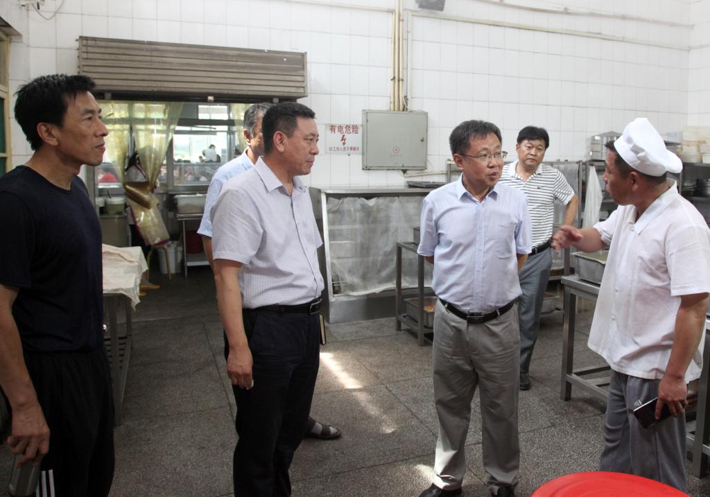 7月3日上午,德赢vwin体育官网副校长王云到德赢食堂开展专项检查工作。在院长郑旗及相关部门负责人的陪同下,深入到食堂、学生公寓及操场等地调研。王云副校长仔细查看了食堂的操作间、各种安全记录、食堂仓库管理等,对德赢食堂的规范管理给予了肯定。王云副校长要求:“食堂还要精益求精,把食品安全放在第一位,给师生提供合格安全的食品,把食堂卫生及食品安全做到最好。”随后他对三校区的后勤服务工作存在的问题进行现场办公,确保期末服务工作安全到位。(赵锦涛/文 邓碾管/摄)