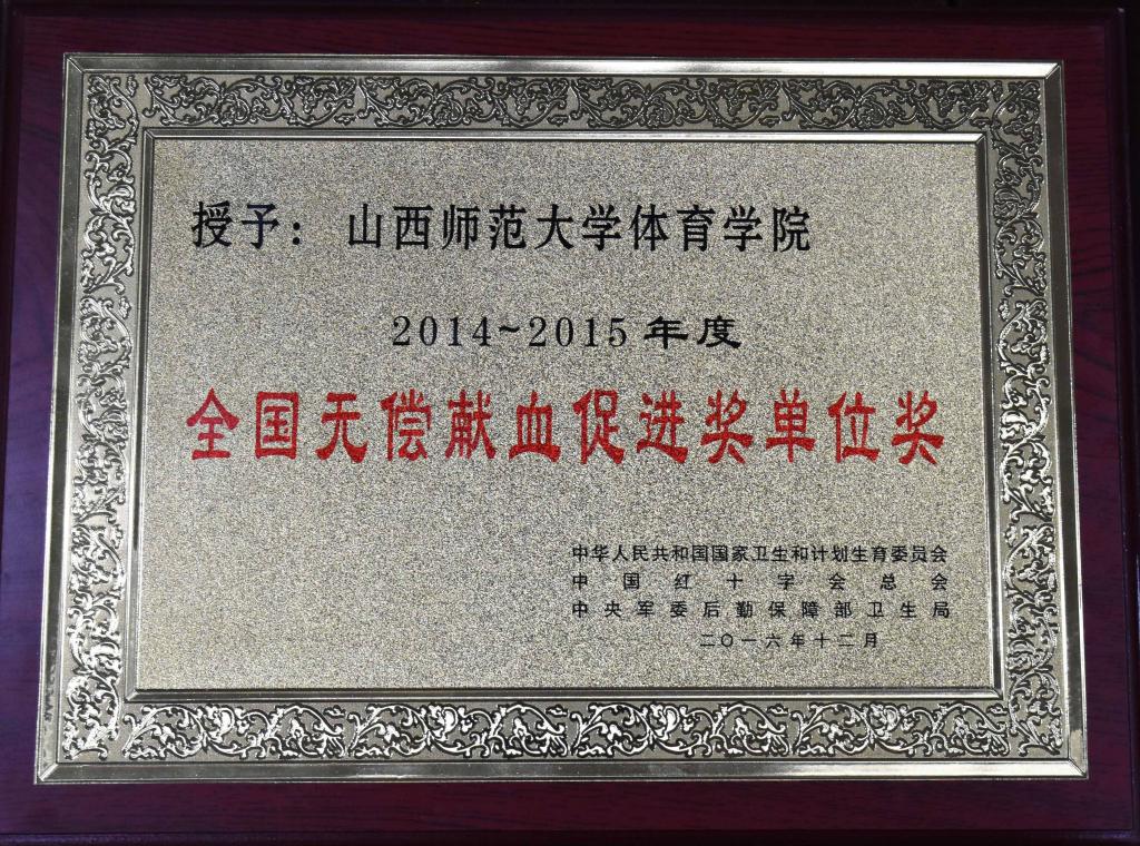 12月1日,中华人民共和国国家卫生和计划生育委员会、中国红十字会总会、中央军委后勤保障部卫生局为德赢vwin体育官网颁发了2014——2015年度全国无偿献血促进奖单位奖。德赢vwin体育官网党委副书记孙学虎领奖。