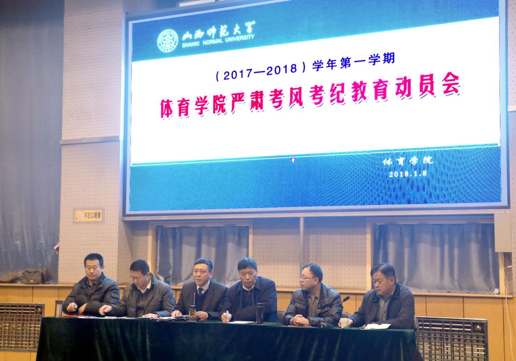 1月8日下午,德赢vwin体育官网(2017-2018学年第一学期)严肃考风考纪动员会议在综合馆一层召开。院领导、全体教职工及学生代表参加会议。会议由院长郑旗主持。