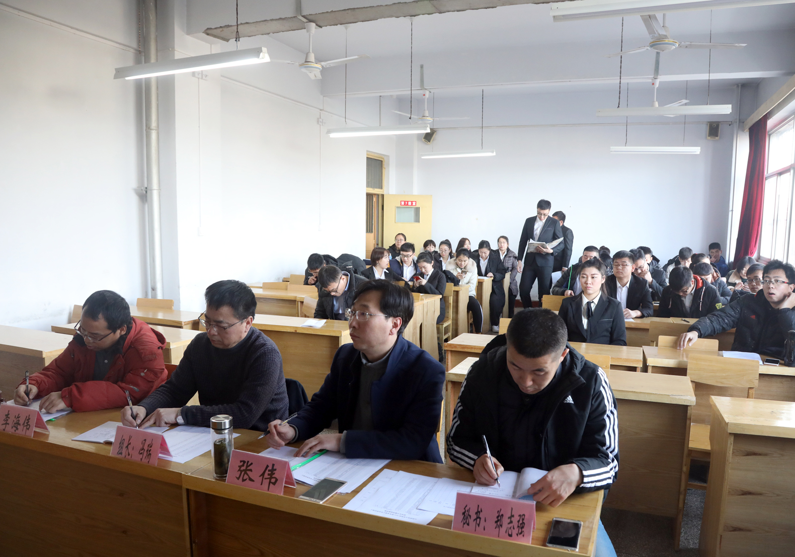 参加此次中期考核的研究生分别从思想政治表现、学分、学位英语、英语六级、科研成果、学术活动参与、教学实践、学位论文研究进度、获奖等方面进行汇报。考核组专家对学生汇报的各项指标进行仔细询问和核查,并对每位参加考核的研究生进行考核结果评定。