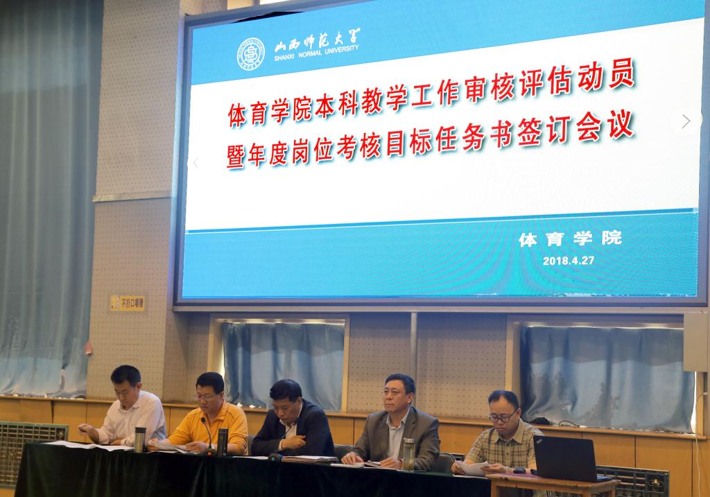 4月27日下午,德赢vwin体育官网本科教学工作审核评估暨年度岗位考核目标任务书签订仪式与学科建设“攻坚行动”部署安排会在体育综合馆一层召开。学院领导、全体教职工及学生干部代表参会,研究生院副院长冯晓丽教授出席会议。会议由院党委书记李学刚主持。