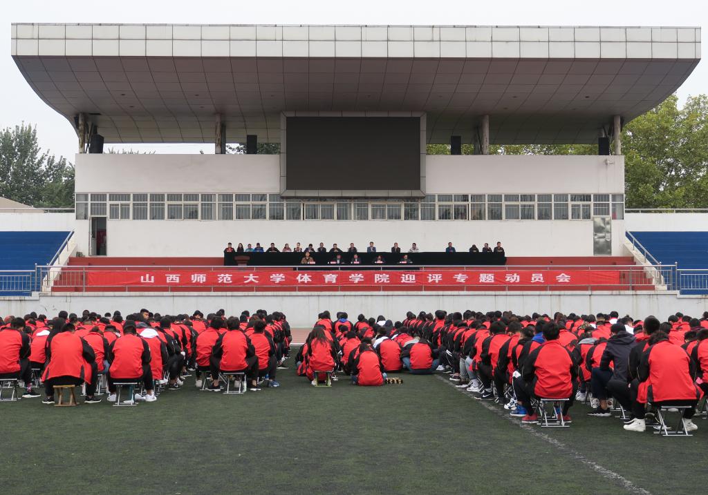 迎评专题动员会在全体师生奏唱国歌声中拉开序幕。首先,由院党委书记李学刚作动员讲话,他强调了要切实增强迎评工作的责任感和紧迫感、明确迎接评估的工作重点。随后,院党委副书记孙学虎进行迎评知识再培训,详细地讲解了本科教学工作审核评估相关知识。李学刚书记就迎评及评估期间重点工作进行安排,要求教师要做好随时被抽查、被听课的准备,团委学生会要发挥积极作用、主动作为,营造迎评氛围,组织好学风建设和宿舍检查工作,希望全院师生能够树立正确的评估价值取向,使学校的评建工作融于日常的教学工作和质量保障体系建设之中,做好充分准备迎接本科教学工作审核评估。学生代表、体教系1701班侯璇同学进行了表态发言。