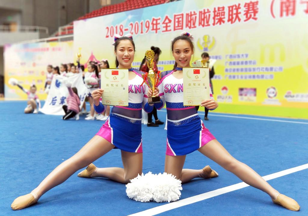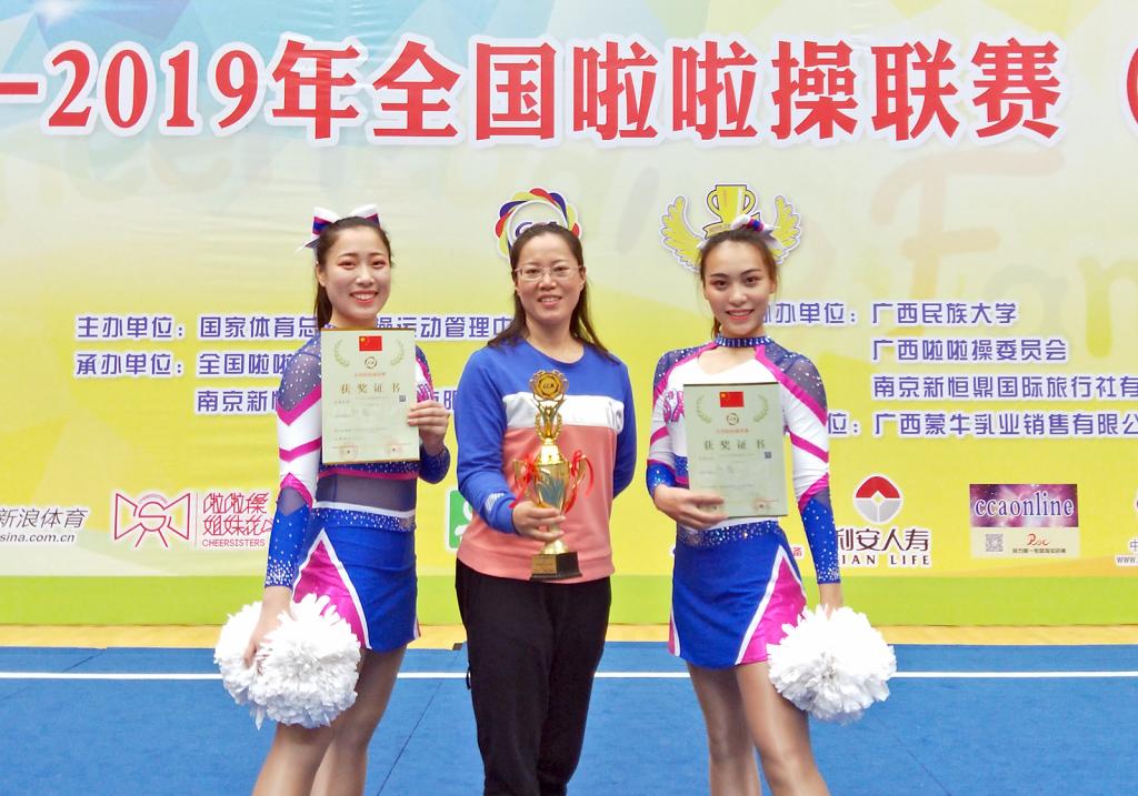 德赢vwin体育官网学生张宇曦、李凡在领队郑旗院长、教练员郭丽娟老师的带领下,齐心协力、顽强拼搏,最终在学校俱乐部青年甲组双人花球自选动作中,以494的高分荣获冠军,并且获得了代表中国参加2018-2019年国际啦啦操系列赛事的资格,同时郭丽娟老师获得优秀教练员的称号。