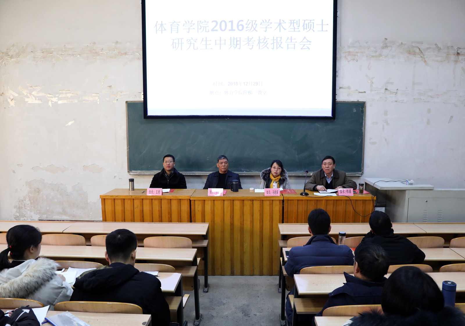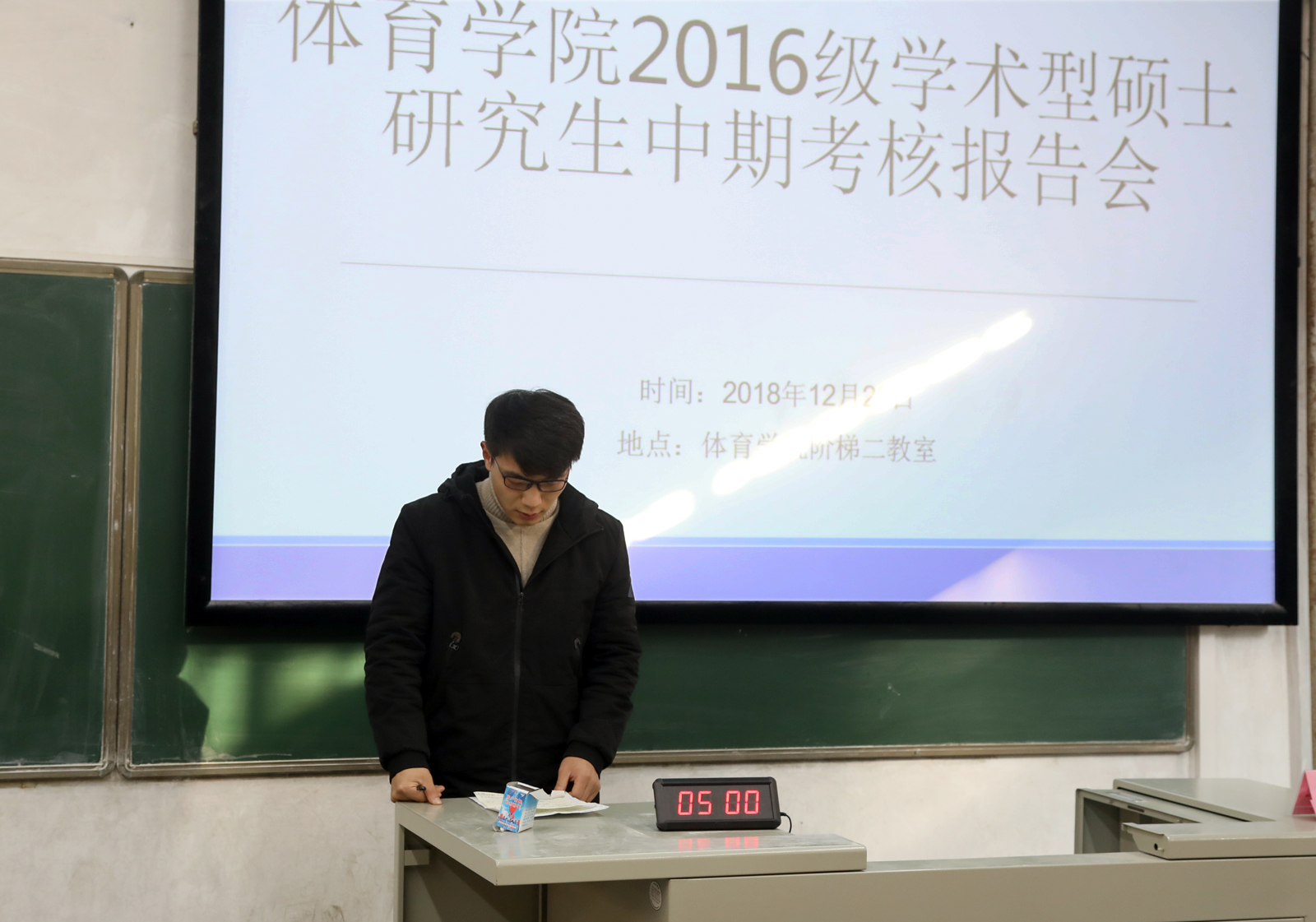 2018年12月29日下午2:30在德赢vwin体育官网阶一、阶二、阶三、第6教室同时举行了2016级学术型、2017级体育硕士研究生中期考核报告会。