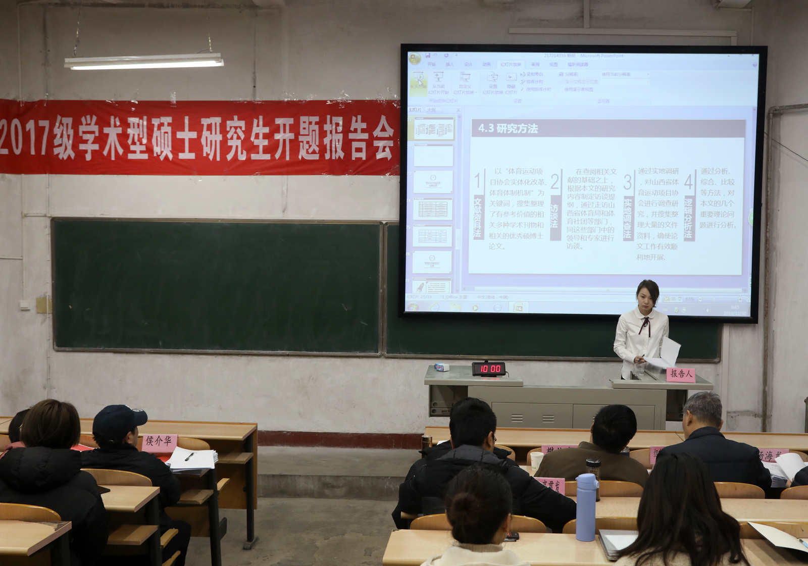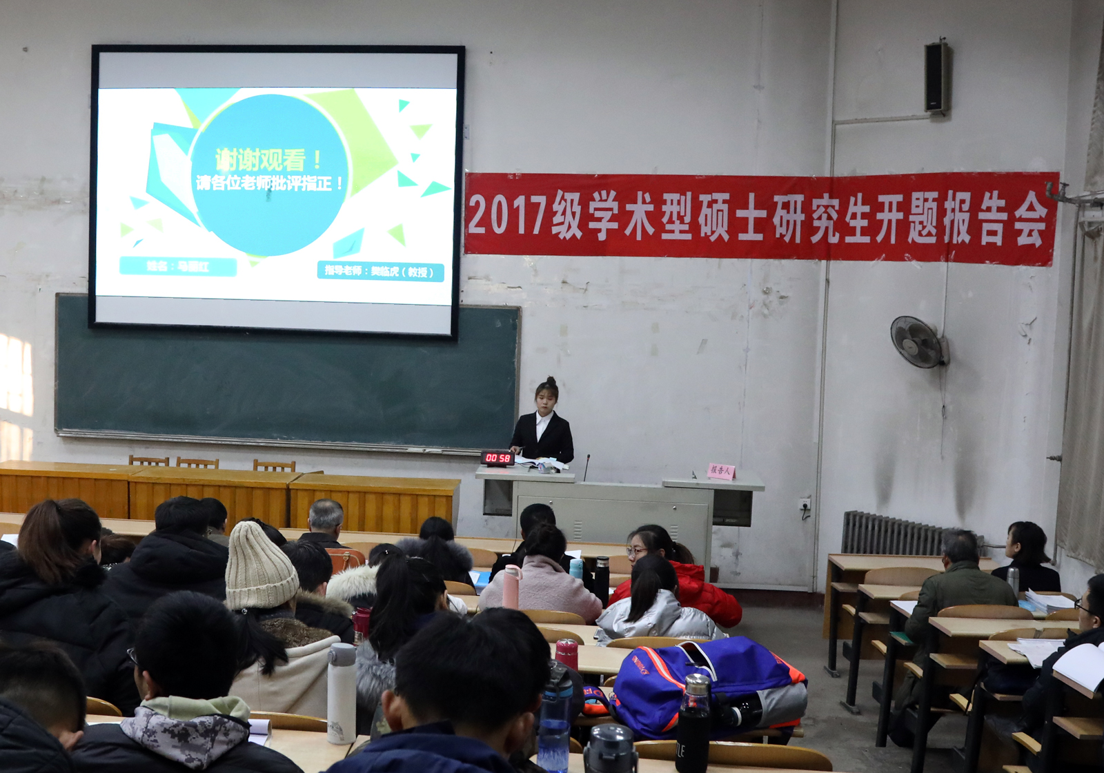 2018年12月30日,在德赢vwin体育官网阶梯一、二教室举行了2017级学术型硕士研究生开题报告会。报告共分两个单元,17位专家对38名硕士研究生的论文开题报告进行了讨论与评议。2017级全体研究生及部分导师参加了本次开题。参加本次开题的38名硕士研究生以PPT的形式,逐一分别从选题依据、选题目的意义、文献综述、研究对象与方法、研究内容、技术路线图、进度安排、预期达到研究成果、参考文献等方面进行了详细陈述。专家们针对每位研究生论文开题的具体情况提出了中肯的意见与建议,并对各位研究生论文选题的可行性进行了讨论。