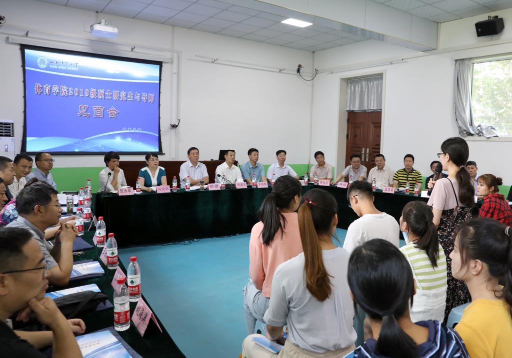 9月8日下午,德赢2019级硕士研究生与导师见面会在运动生物力学实验室举行。院党委书记许国宝、院长郑旗、副院长卢向阳、陈乐琴、王江、张伟、研究生院副院长冯晓丽,研究生指导教师以及2019级全体硕士研究生参加见面会。会议由陈乐琴副院长主持。
