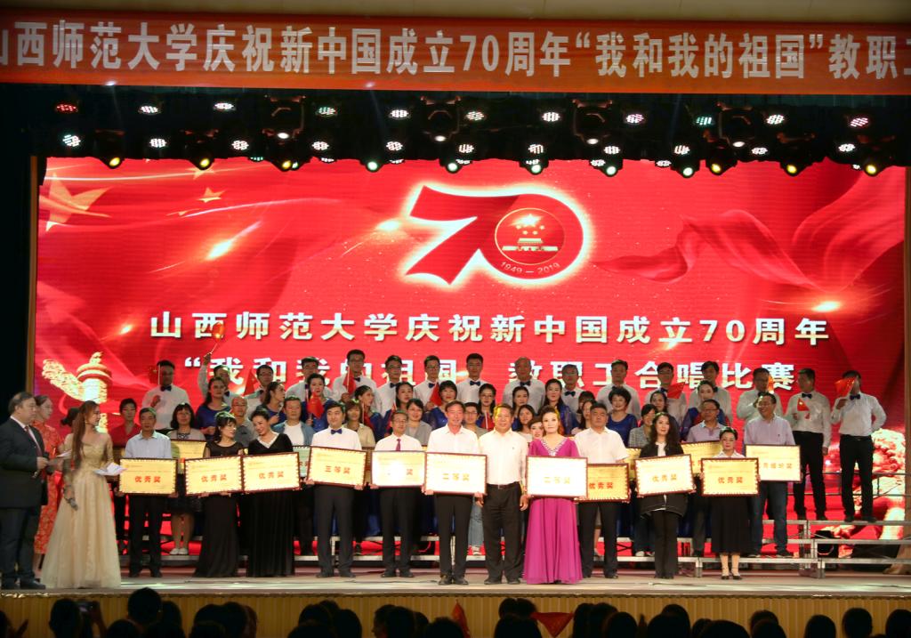 9月27日晚,由德赢vwin体育官网工会举办的庆祝新中国成立70周年“我和我的祖国”教职工合唱比赛在文化活动中心圆满落幕,学校共25个单位部门参加了合唱比赛。德赢教职工演唱的曲目《我和我的祖国》、《团结就是力量》以初赛第一名的优异成绩进入决赛。决赛中,老师们以饱满的精神状态、饱含深情地演唱激发了评委和观众的情感共鸣,得到了99.51的高分,最终荣获第二名的佳绩。