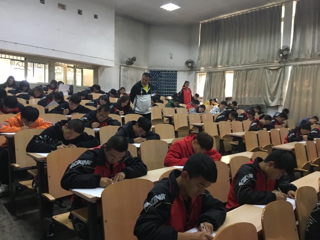 为了加强我系学生思想政治和管理工作,建设良好系风、学风,优化育人环境。10月17日中午12:30,在阶梯一、二、三教室,体育教育系举行了2019级全体本科生《学生规范》学习考试。系主任张杰、副主任张学兵、辅导员闫培烨等人参加了本次考试的监考工作。