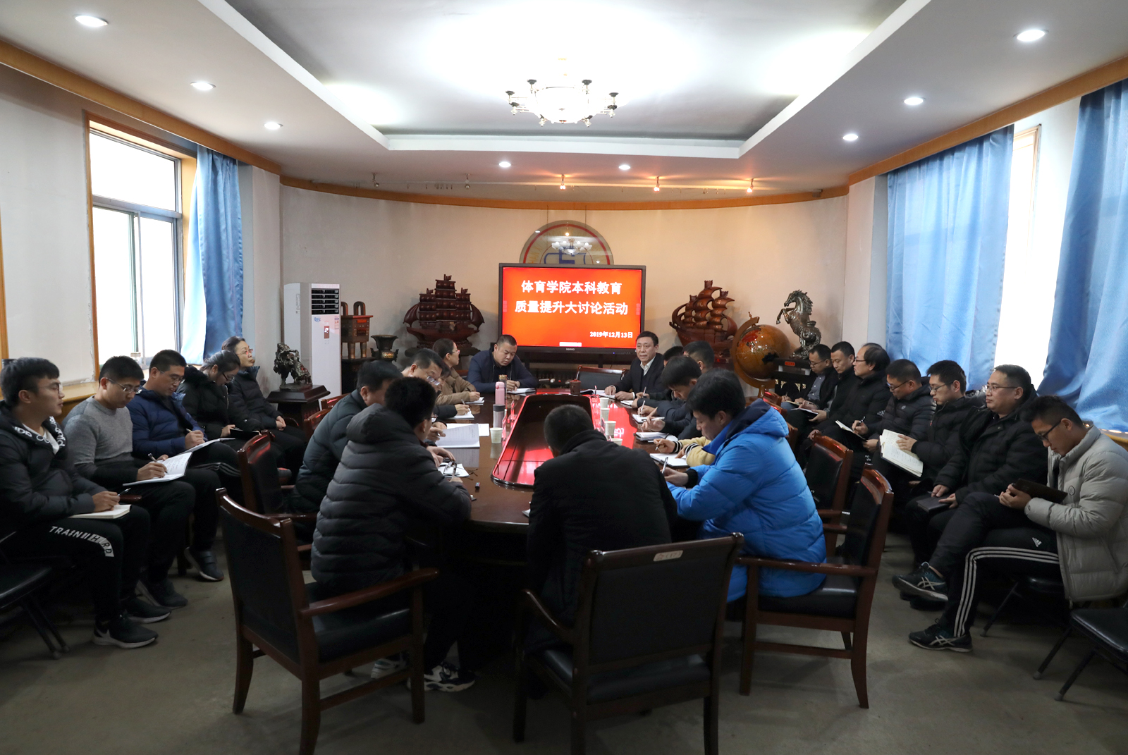 12月13日下午,德赢在东会议室开展了本科教育质量提升大讨论活动。校教学指导委员会委员王彤、韩美竹、院领导、各系部、科室负责人以及教师代表参加了会议,会议由院长郑旗主持。