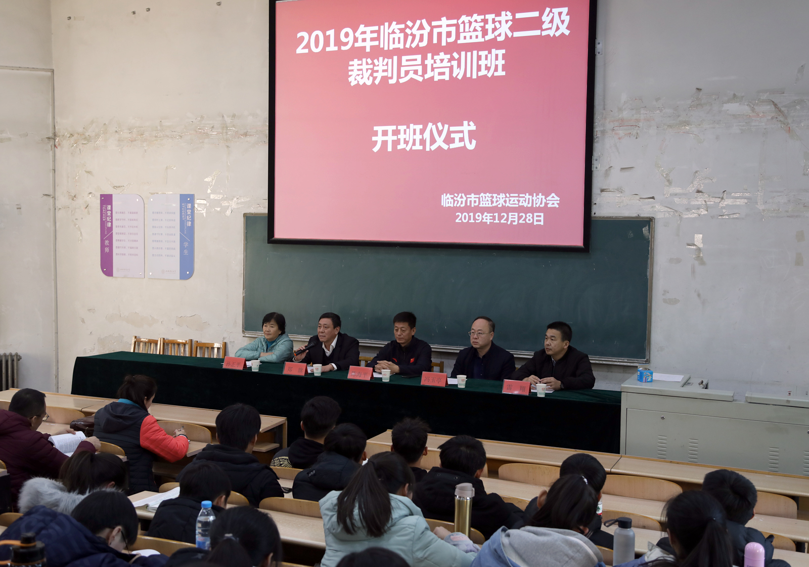 12月28日下午,2019年临汾市篮球二级裁判员培训班在德赢开班。临汾市体育局局长陈海平、德赢vwin体育官网院长、市篮球运动协会常务副主席郑旗,市体育局竞赛科科长冯玉亭,市篮球运动协会裁判委员会主任雷翔等出席开班仪式。开班仪式由临汾篮球运动协会秘书长孙正平主持。