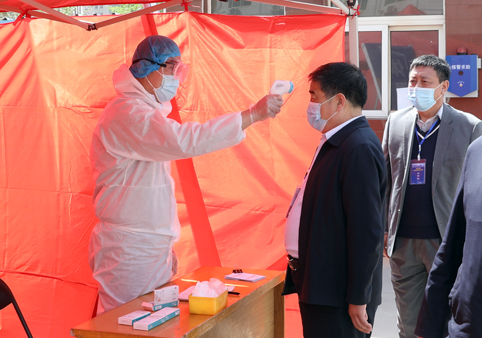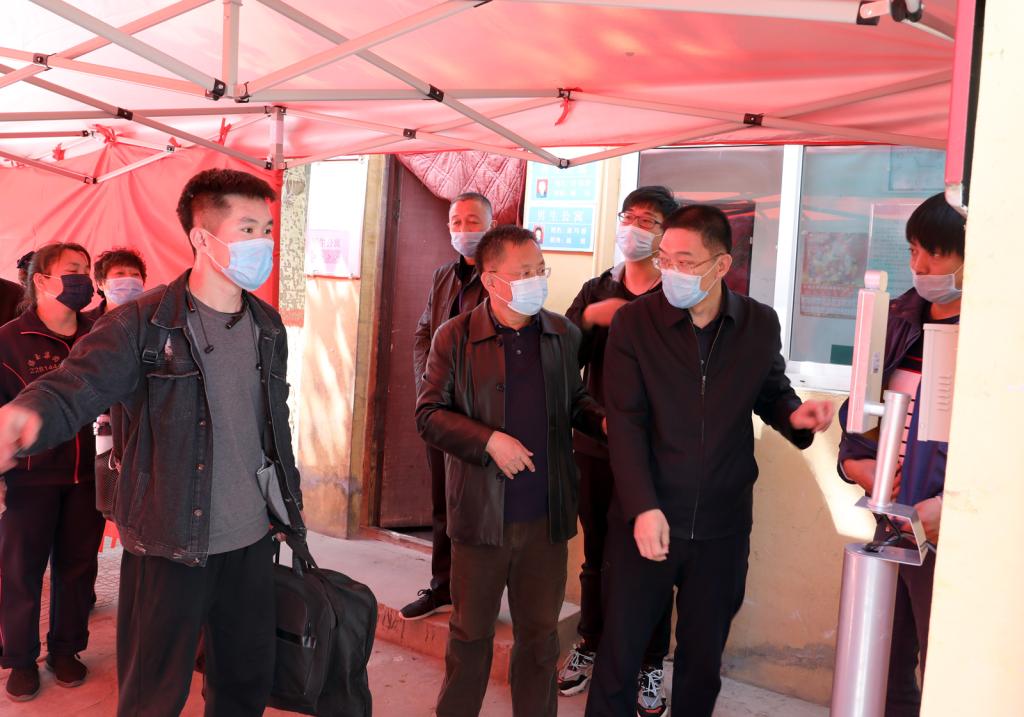 校党委书记卫建国详细询问了学院返校学生的具体情况,并仔细查看了学生体温检测、餐饮流程、学生宿舍及应急处理准备等场所。校领导还与工作人员及返校学生进行了亲切交谈,并叮嘱大家要理解学校的各项管理措施,提高自身防护意识,保持身心健康,以饱满的精神状态投入到学习工作中。