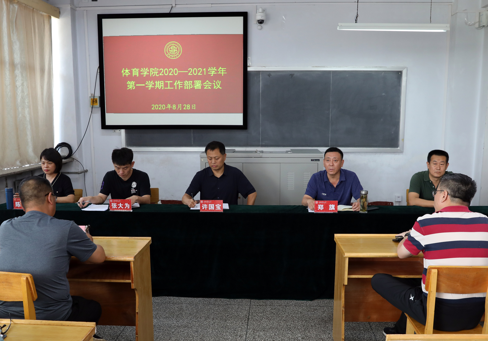 会上,院长郑旗首先传达了学校召开的2020-2021学年第一学期工作部署会议精神,通报了暑期学院工作情况,并就秋季学期重点工作进行了安排部署。他强调,学院正处在由大院向强院迈进的关键阶段,必须清醒认识到工作中存在自主自为自觉意识不强、学思践悟不够、创新思维欠缺及学术团队建设意识不高等问题,要求大家以更加开放的胸怀、更加自觉的意识和更加务实的作风积极工作,主动谋大局、应变局、开新局,持续推动学院高质量发展。会上,院党委副书记张大为安排了学生返校事宜,并提出要求;副院长卢阳安排了学院行政、训练等有关工作。