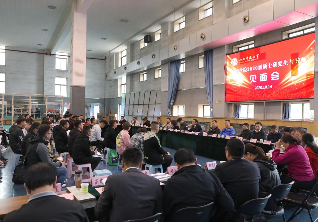 10月14日上午,德赢2020级硕士研究生与导师见面会在综合馆一层举行。学院领导、研究生导师、各系部和职能部门负责人以及2020级全体硕士研究生参加了本次见面会。会议由陈乐琴副院长主持。
