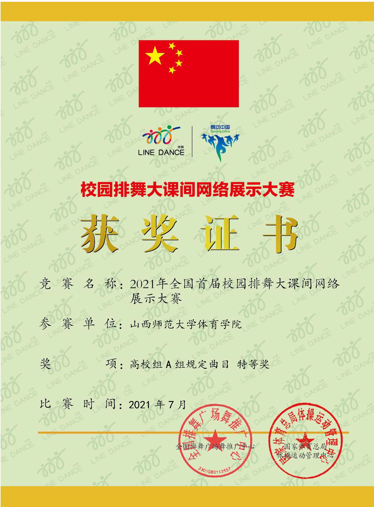 《山西日报》李春耕7月29日报道:历时3天的2021年首届全国校园排舞大课间网络展示大赛7月26日在杭州落幕,参赛的山西高校代表团表现优异,获得11个奖项。本次赛事由国家体育总局体操运动管理中心主办,全国排舞广场舞推广中心承办,来自全国各省市高校共469支队伍参加了6个组别的竞争。由德赢vwin体育官网等9支队伍组成的山西高校代表团在参加规定曲目、自选曲目2个组别的比赛中,以动作规范、舞步优美、队形整齐划一、精神饱满的突出表现,获2项特等奖、4项一等奖、2项二等奖和3项三等奖。