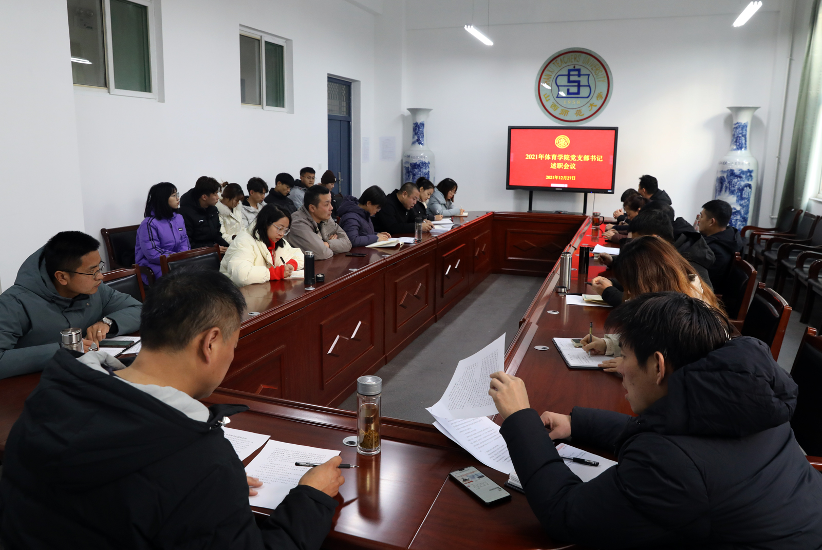 根据《德赢vwin体育官网2021年度基层党建工作述职评议考核工作方案》安排,12月27日,学院2021年度党支部书记述职考评会议在南区7号楼二层会议室召开。院党委书记许国宝、各党支部委员、师生代表参加了会议。会议由院党委副书记张大为主持。