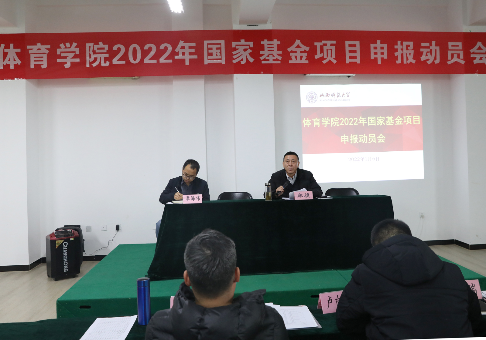 1月6日下午,德赢vwin体育官网2022年国家基金项目申报动员会在学院实验中心召开。院长郑旗、具备申报资格的硕士生导师和具备申报资格的青年教师参加会议,会议由院研究生部主任李海伟主持。