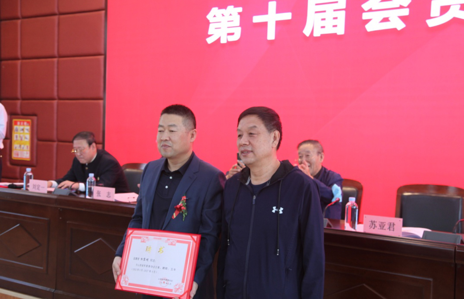 原山西省体育局局长、山西省体育总会主席苏亚君给权黎明颁发主席聘书
