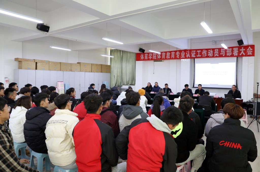 为进一步推进师范类专业认证工作,2022年12月2日下午德赢进行了体育教育专业认证工作动员与部署大会,会议采用线上线下同步进行。院党委书记卫建平、院长郑旗、教育部普通高等学校师范类专业认证专家、生命学院胡青平教授、教育部普通高等学校师范类专业认证项目管理专家、美术学院党委副书记刘宏超、体育教育系主任张杰,全院教职工和体育教育系学生代表参加会议,会议由副院长孟春雷主持。