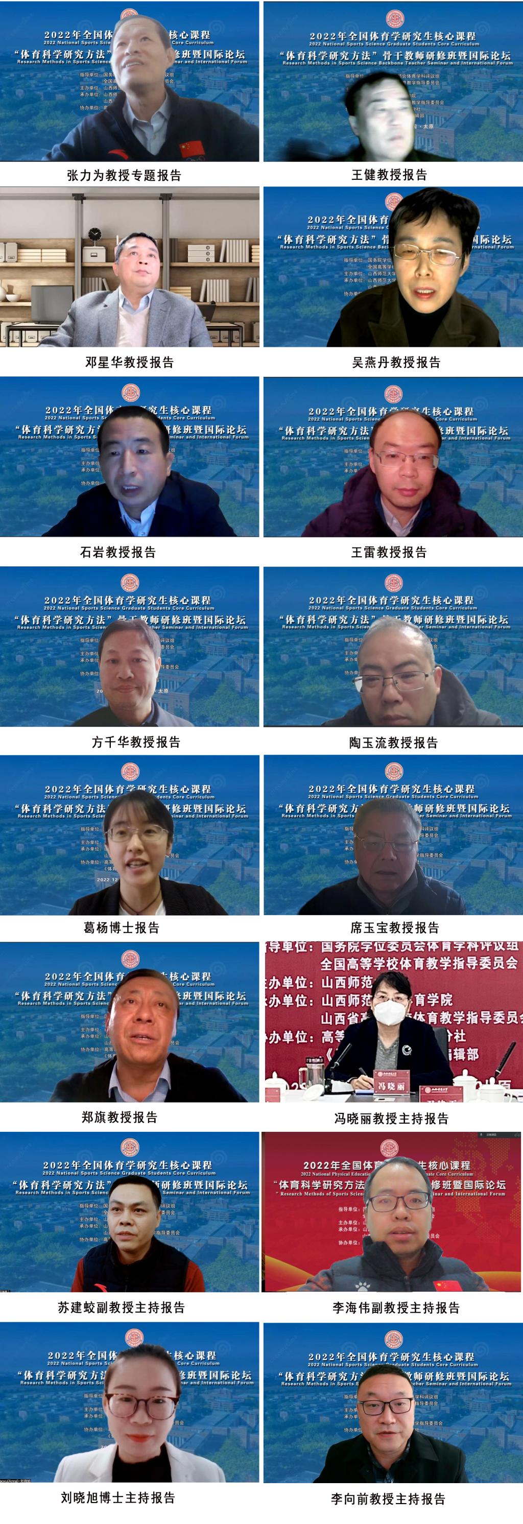 会议通过线上公益直播讲座的方式举行。会议在国务院学位委员会体育学科评议组、全国高等学校体育教学指导委员会的指导下,由德赢vwin体育官网主办,德赢vwin体育官网、山西省高等学校体育教学指导委员会承办,来自北京体育大学、上海德赢vwin体育官网、华东师范大学、华中师范大学、华南师范大学、西南大学、福建师范大学、安徽师范大学、苏州大学、山西大学、澳门大学、美国莱卡南州大学、美国怀俄明大学、加拿大阿尔伯塔大学、韩国龙仁大学、德赢vwin体育官网等16所高校及相关单位专家学者、师生参加了会议。