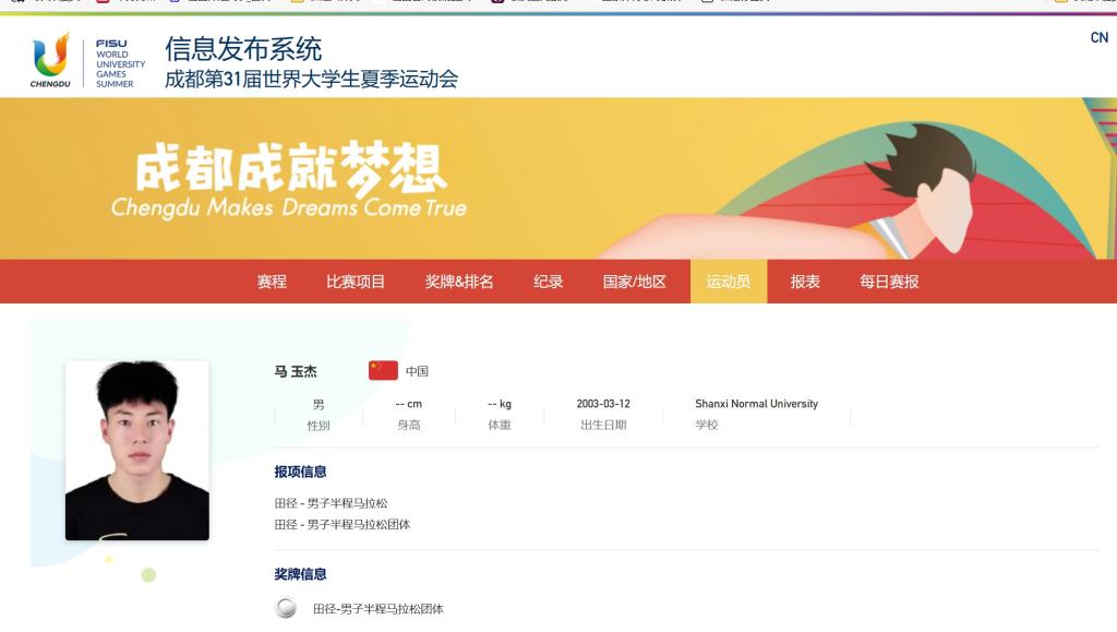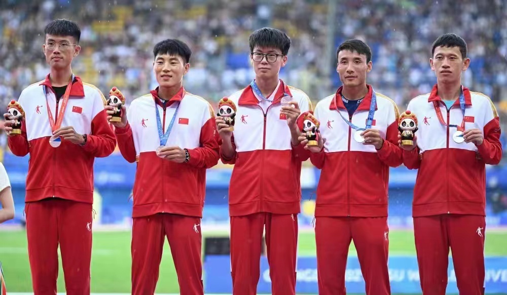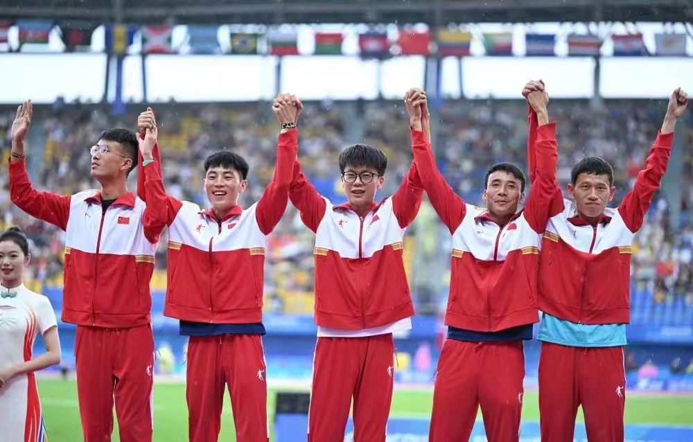 成都第31届世界大学生夏季运动会传来喜讯,8月6日上午结束的田径-男子半程马拉松团体决赛中,德赢vwin体育官网2022级运动训练专业马玉杰、2019级运动训练专业王丛政与中国队的陈天宇(扬州大学)、马瑞(吉林大学)、杨克古(上海体育大学)以3小时17分12秒的总成绩获得银牌。(德赢vwin体育官网)