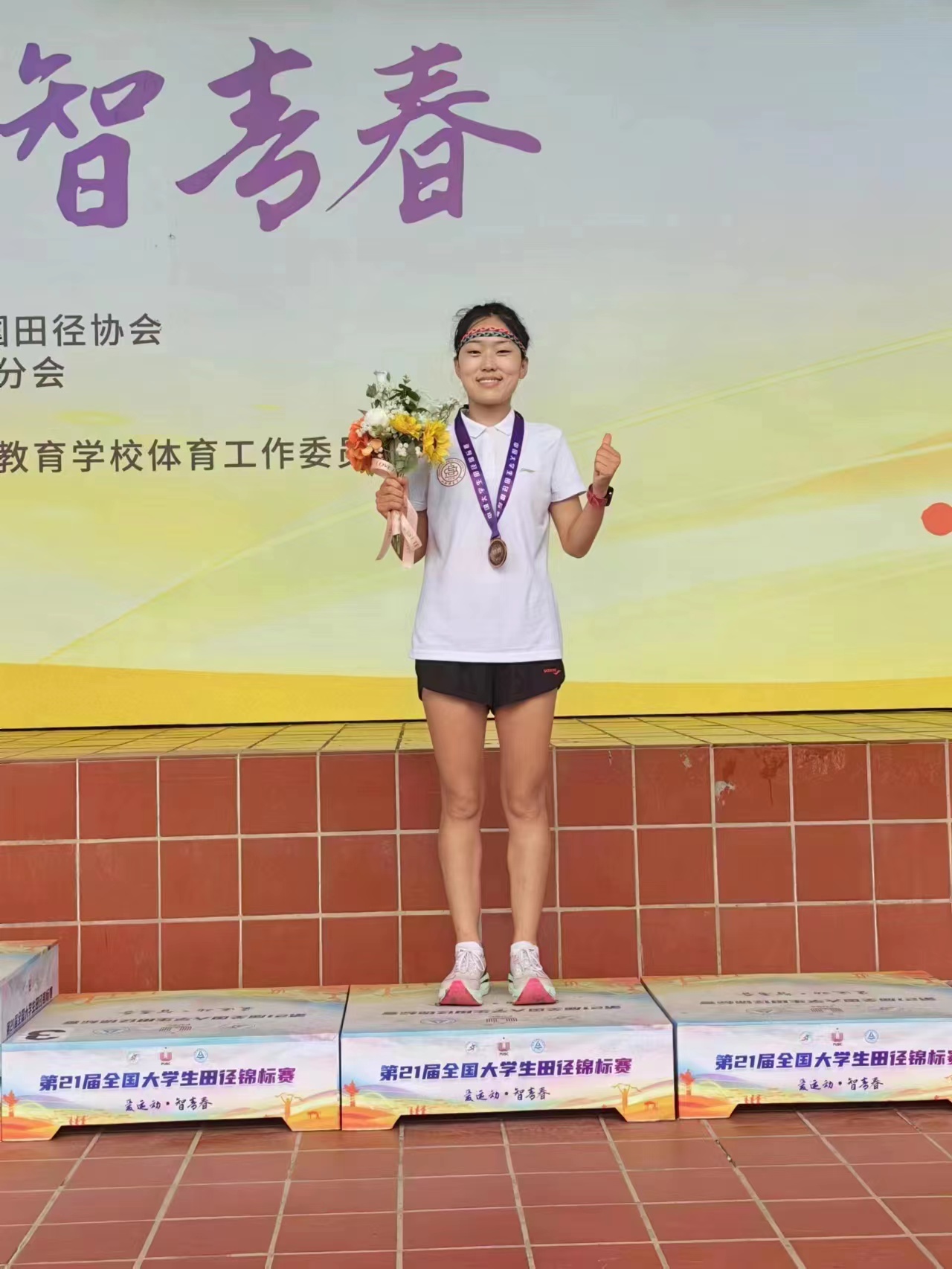 8月12日、14日,2022级体育硕士研究生郭利亚(教练员张振)克服重重困难,摘得女子丙组10000米铜牌,并获得女子丙组5000米第四名;8月13日,运动训练专业2022级本科生贾伟辰(教练员张学兵、张振)克服天气炎热等不利因素,获得男子丙组20000米竞走第五名;运动训练专业2022级本科生高玉龙(教练员庞俊梅),在男子丙组100米预赛中跑出10.54秒,达到了田径国家一级运动员标准,并创我校百米最高记录。